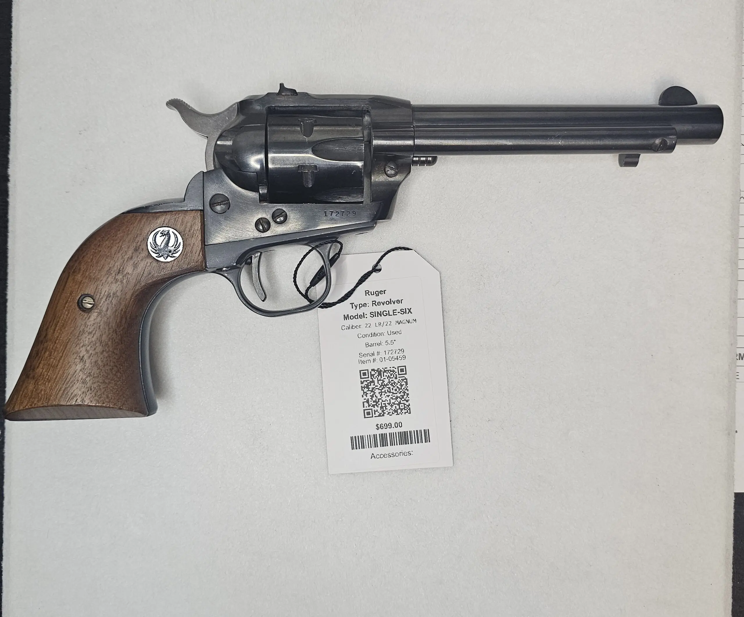 Ruger / Sturm, Ruger & Co.RUGER NEW MODEL SINGLE SIX 5.5″ .22 STAINLESS STEEL #01-05423$499.00Add to cart