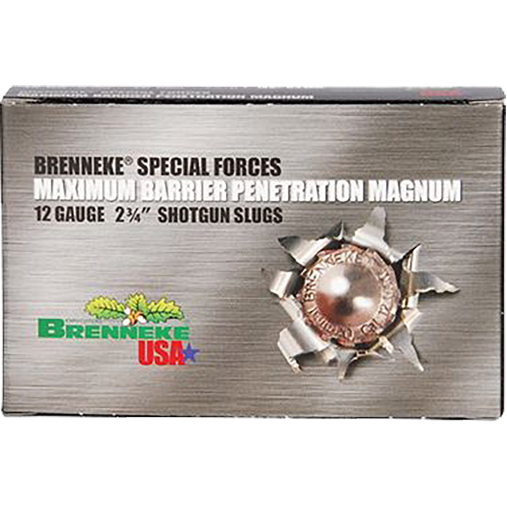 The Brenneke Special Forces Maximum Barrier Penetration (MBPM) was developed at the request of the military and law enforcement communities for highly demanding applications requiring maximum penetration of vehicles and other barriers, even beyond that of the Special Forces Short Magnum.
