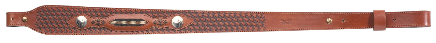 Browning’s full line of slings serve to lighten a hunter’s load, and are designed to blend in with the surroundings or make a subtle style statement. The Buffalo Nickel sling features unique buffalo nickel overlays and braided horsehair inlay panel. Its full-grain leather construction with classic basketweave design and comfortable suede backing, while the tapered shape provides added width at shoulder. The sling has an adjustable length and is compatible with most rifles. Swivels are not included.