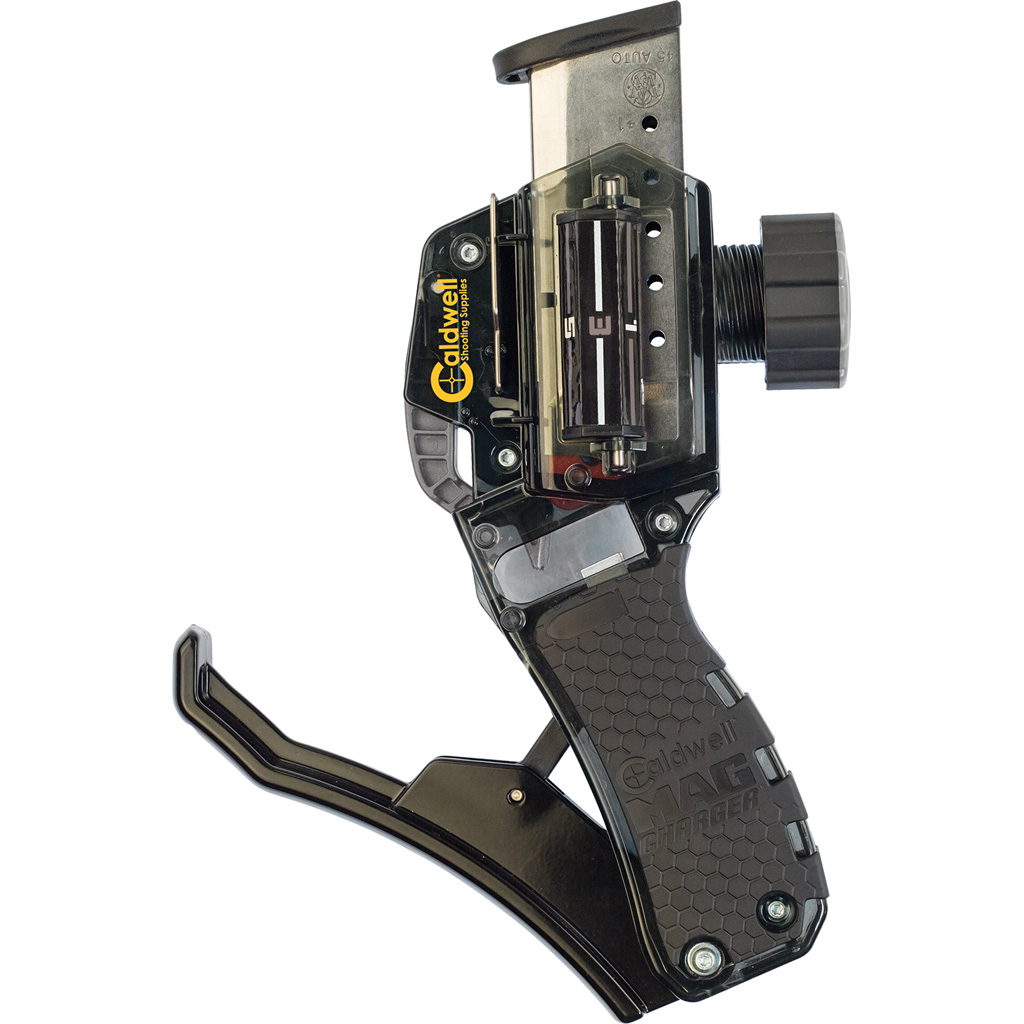 Mag Charger Universal Pistol Loader is designed to work with almost all pistol magazines. The Universal Pistol Loader works with both single-stack and double-stack magazines and loads 9mm, 10mm, .380*, .357 Sig, .40 S&W and .45 ACP.