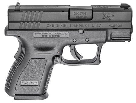 The Springfield Armory Defender XD is a sub-compact 9mm pistol built on a black, high-impact polymer frame with a short 3-inch barrel and fixed three-dot sights. Its compact footprint is intended for everyday carry and close-quarters utility where a smaller profile is desired. The package references a single included detachable magazine and a Melonite barrel finish.