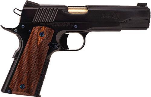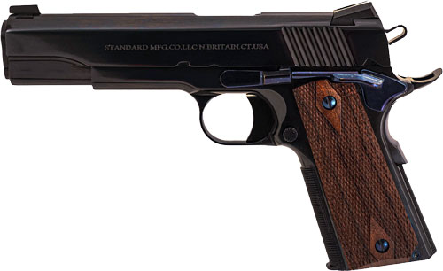 The Standard Manufacturing 1911B is a traditional full-size 1911-style pistol chambered in .45 ACP with a 5″ match-grade barrel and a deep Royal Blue polished finish. The pistol features a CNC-machined 4140 carbon steel frame and slide with enhanced slide-to-frame fit and serrated slide surfaces. Controls and ergonomics reflect classic 1911 design with modern manufacturing precision for range use, competition, and collecting.